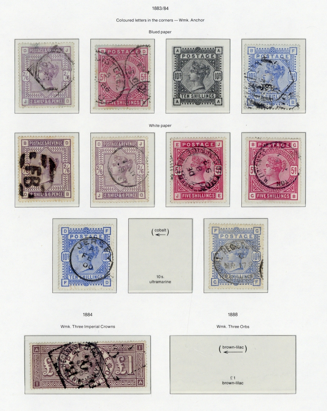 1840-1991 mint and used collection housed in two green Lighthouse albums, contained in a carton, many hundreds, including 1840 1d. (11), 2d. (3, one with blue Maltese Cross cancellation), 1858-79 1d. Plate 225, 1870 ½d. Plate 9, 1847-54 Embossed 1/- (3), 10d., 6d. (4), all cut square, 1855-57 1/- (3), 1862-64 9d. (2), 1/- (2), 1865-67 9d., 1867-80 with values to 2/- blue (5), 2/- brown (poor), 1867-83 watermark Maltese Cross 5/- (2), £1 fine colour, watermark Anchor 5/- Plate 4, 10/- (2), £5 orange, 1883-84 with values to 10/- (3), 1884 watermark Crown £1 brown-lilac, 1887-92 £1 green, Edward VII with 10/- and £1 used, 1913 multiple cypher ½d. and 1d., 1913 Waterlow £1, 1929 P.U.C. £1, 1934 1-/-, 1939-48 set, 1948 Wedding £1, 1951 set, later issues, Officials, etc., mixed condition. Also an album of "History of the Monarchy"