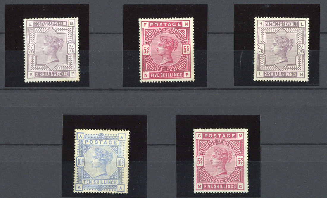 A highly attractive and valuable mint collection in stockbooks from 1840 1d. with small to large margins (without gum), 1841 1d. (3) and 2d. (2), one with good to large margins all round, a few later Line Engraved; a good selection of Surface Printed with 1855-57 4d. (2), 1862-64 3d. (2) and 6d., 1865-67 4d. (2), 1867-80 3d. (2), 6d. and 2/- blue (reperforated wing margin), 1873-80 values to 1/- green (3) including 4d. vermilion and 4d. sage-green, 1880-83 values to 6d., 1880-81 5d., 1883-84 Lilac and Green values to 1/- (9d. overprinted "specimen"), 1883-84 2/6d. (2), 5/- (2) one supposedly on blued paper, and 10/-, 1887-1900 Jubilee sets to both 1/- (2), 4½d. pane of twenty (pane A) showing damage to inner frame line, and other values to £1 green and some Officials. K.E.VII with values to 5/- (3), 10/- (2) and both £1, K.G.V from Downey Heads with some better items, 1912-24 values to 1/- (2), Seahorses with Waterlow 5/- and both £1, De la Rue 2/6d. and 5/-, Bradbury 2/6d. (2), 5/- (2) and 10/-, 1924-26 Block Cypher set plus watermark sideways, 1924 and 1925 (4) Wembley sets, P.U.C. £1 (2), 1934 Re-engraved 2/6d. and 10/-. K.G.VI with duplicated high values with Postage Dues including the set overprinted "specimen", an extensive selection of Q.E. to 1986 with Wildings including phosphor-graphite, some of the early phosphor commemoratives, £1 Castles block of twenty, decimal Machins with 3½p. pair imperforate, 12½d. imperforate pair, 16p imperforate pair (3), commemoratives with varieties including1969 Ships 5d. missing grey, Christmas 5d. missing light blue, 1970 Literary Anniversaries 1-6d. missing silver, 1982 I.T. 15½p. imperforate pair. Collection of Channel Islands from the war time issues and a few others. Condition of the gum on the Surface Printed is typically very mixed but the later issues are generally fine, lightly mounted or unmounted mint. A very desirable lot which is well worth inspection