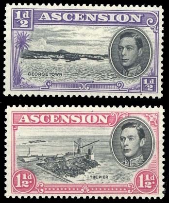 1938-43 ½d. (perf 13) showing variety long centre bar to "e" and 1½d. black and rose-carmine (perf 13) showing variety davit flaw, fine mint. S.G. 38ba, 40fa; £230