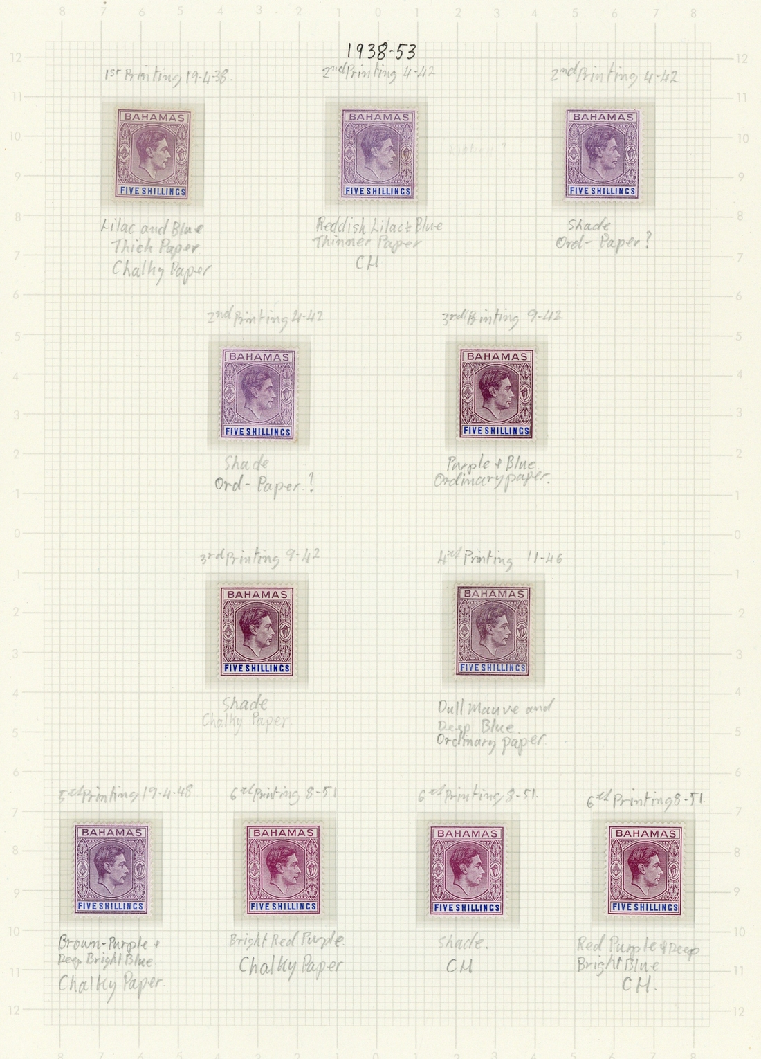 1938-52 issue, a specialised mint collection neatly mounted and written-up on pages with a range of shades and papers, many showing plate varieties with a few accompanied by Columbus stamps for comparison, including ½d. green (2) and ½d. brown-purple showing elongated "E", 2d. pale slate (6, one with short "T", cleaned), 2d. scarlet with short "T" contained in a block of twelve, 1/- (20), 5/- (13) and £1 (7) shades, ½d. green (2, one showing elongated "E"), ½d. brown-purple, 1d. grey, 2d. scarlet, 2d. green (2) and 3d. scarlet sheets of sixty, and few later with 1946 Victory sheets and 1948 Wedding set (2). A fine lot for the specialist