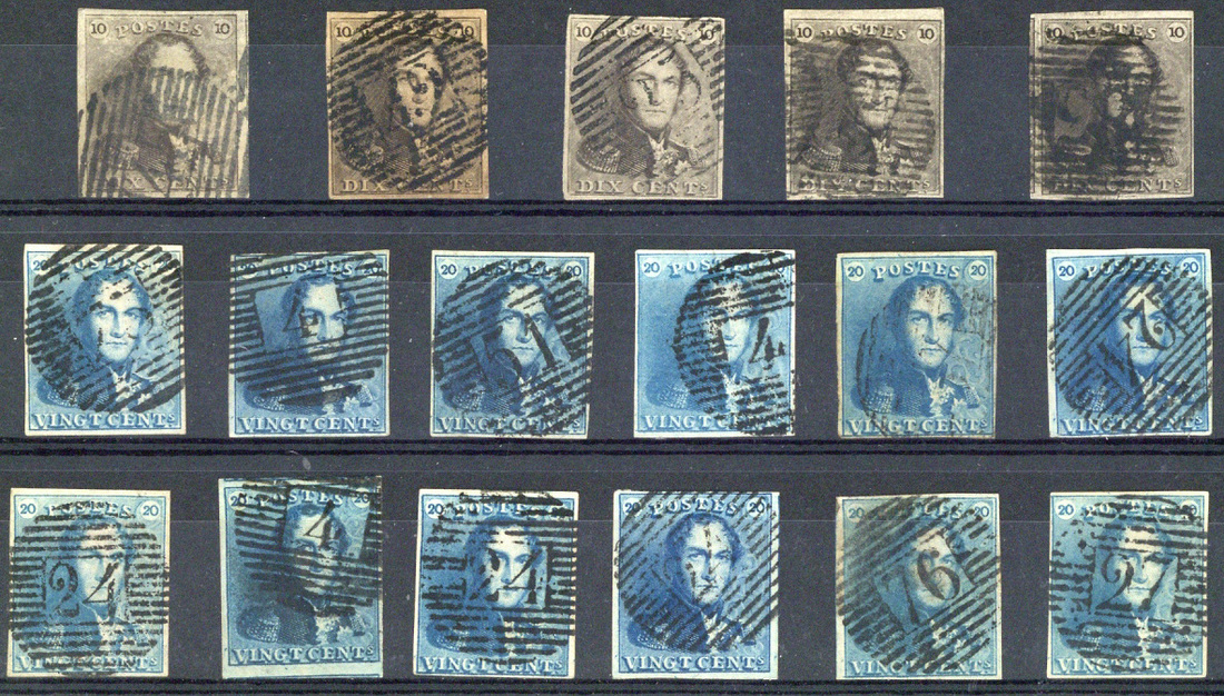 1849 "Epaulette" 10c. (5) and 20c. (12), used, all four margined examples, a range of shades; good to fine