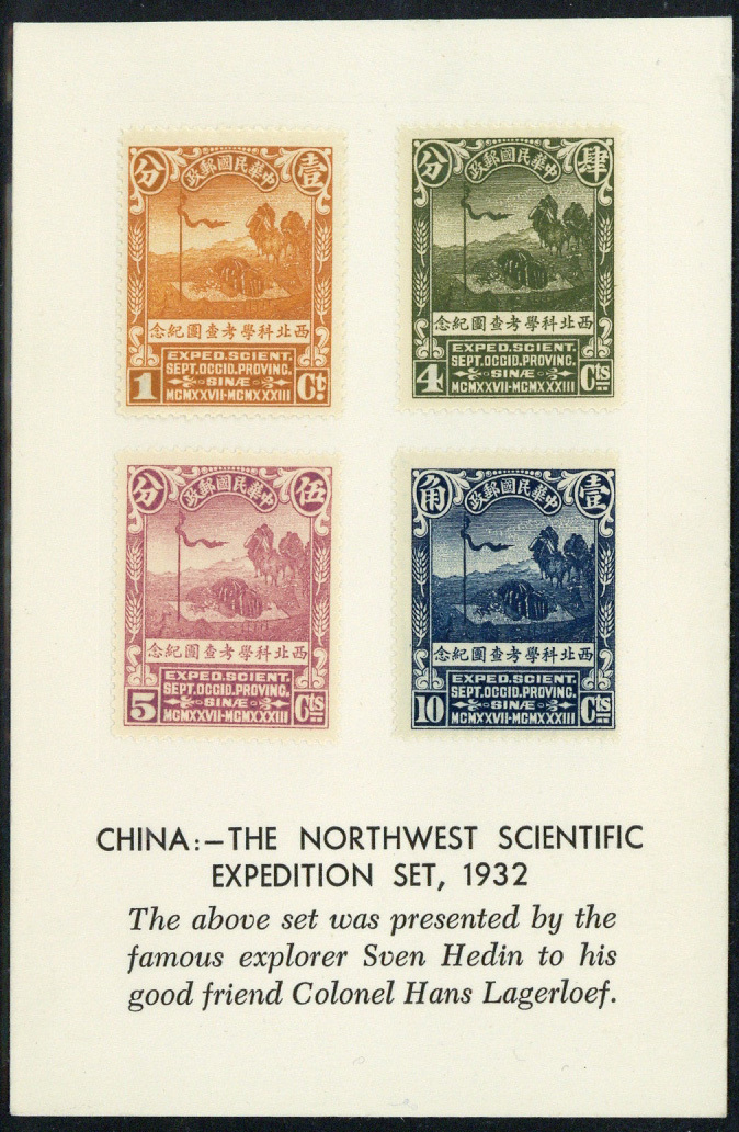1932 North-West Scientific Expedition 1c. to 10c. set of four, large part original gum and mounted on special presentation card. Each stamp with dealer's guarantee on reverse. Fine. S.G. 406-409, £400