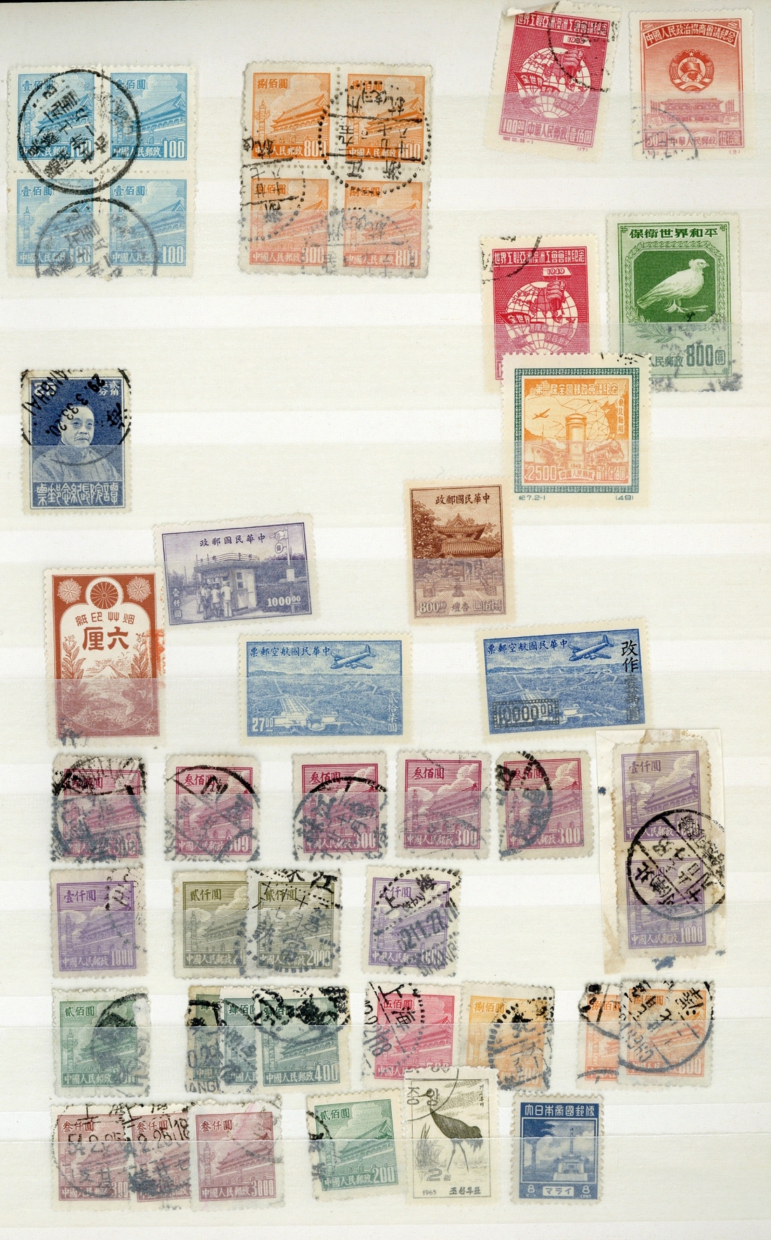 A mostly middle period accumulation in stockbook which includes various Sun Yat Sen issues with some Japanese Occupation, inflation period and some early People's Republic definitives, also some Taiwan. Good quantity. (Hundreds)