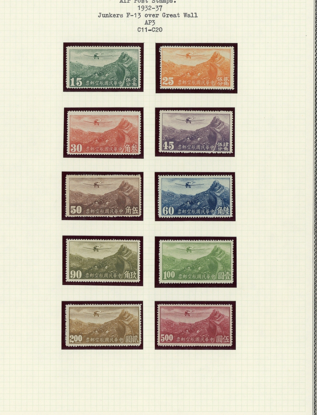 A middle period collection on leaves of air mails and Postage Dues from 1932-37 air set to $5, 1940-41 sets with duplication, 1946 C.N.C. surcharges with duplication including many blocks, 1948 re-valuation surcharges; Postage Dues from 1904 set of six mint and used, 1904 new design with mint to 2c. and used with values to 30c. (2), 1911 1c. and 2c., 1912 Republic Shanghai set to 30c. mint and values to 20c. used, Waterlow values to 30c. mit with some multiples, 1913 London set to 30c. mint and used, Peking values to 30c. mint and used, plus a fine range of later issues to 1949. A good lot