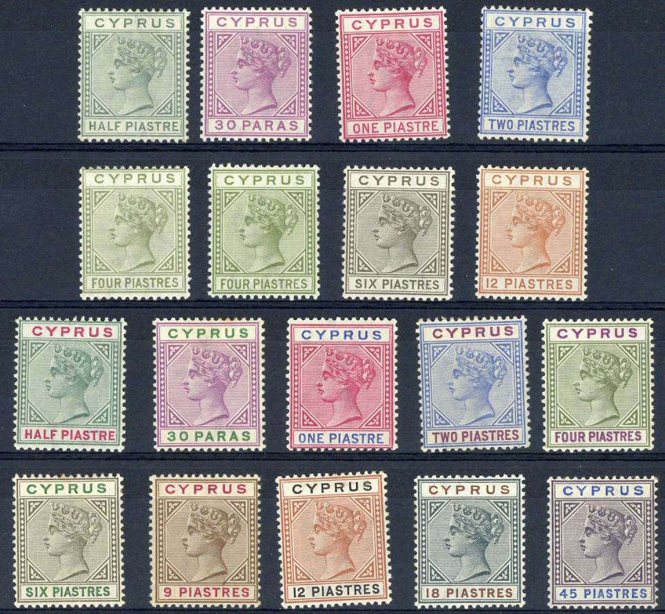 1892-94 ½pi. to 12pi. with 4pi. shade, and 1892-94 ½pi. to 45pi., mint; four values of the 1892-94 set with faults, the 1892-94 set fine. S.G. 31-49, £750