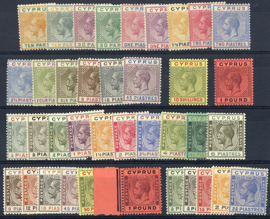 1912-15 set of eleven with 10pa., ½pi., 1pi. and 9p. shades, 1921-23 set of seventeen and 1924-28 set of twenty-one (£1 marginal), mint; a few small faults on values to 10/-, both £1 fine. S.G. 74-122 group, £3,200. Photo for 10/- and £1