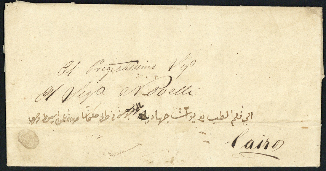 1854 (24 Sept.) entire letter to Cairo with with intaglio seal at lower left, horizontal filing fold just clear of the seal; fine