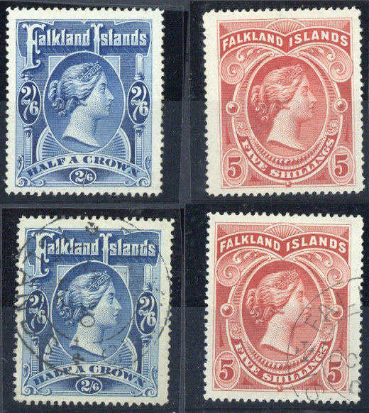 1898 2/6d. and 5/-, mint and used examples of each, fine. S.G. 41, 42, £1,050