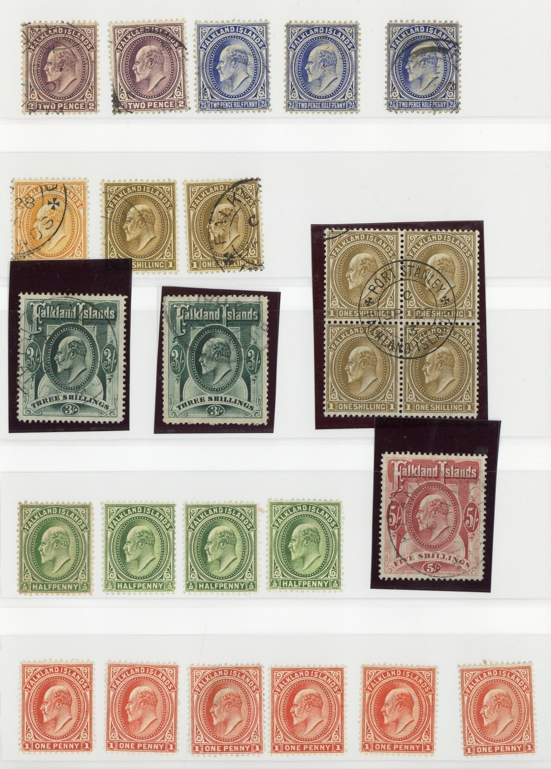 1904-12 mint selection to 1/-, and a used range with set to 5/-, additional 1/- block of four and 3/-, an 1d. complete used reconstruction of the sheet, originally plated by Dr. David Nabarro; generally good to fine