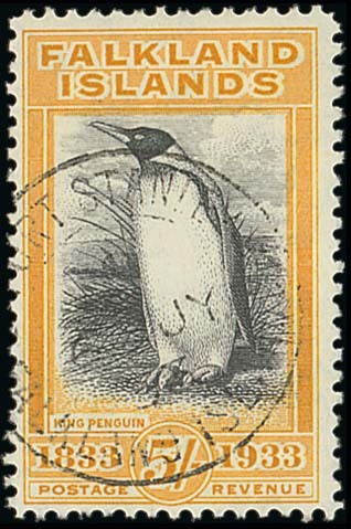 5/- black and yellow-orange, fine used. Scarce. B.P.A. Certificate (1973). S.G. 136a, £3,500. Photo