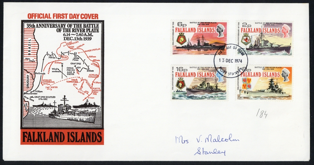 1974 (13 Dec.) River Plate set of four on illustrated first day cover, the 6p. with extraordinary variety black triple and red double prints, fine. SH 233 vi