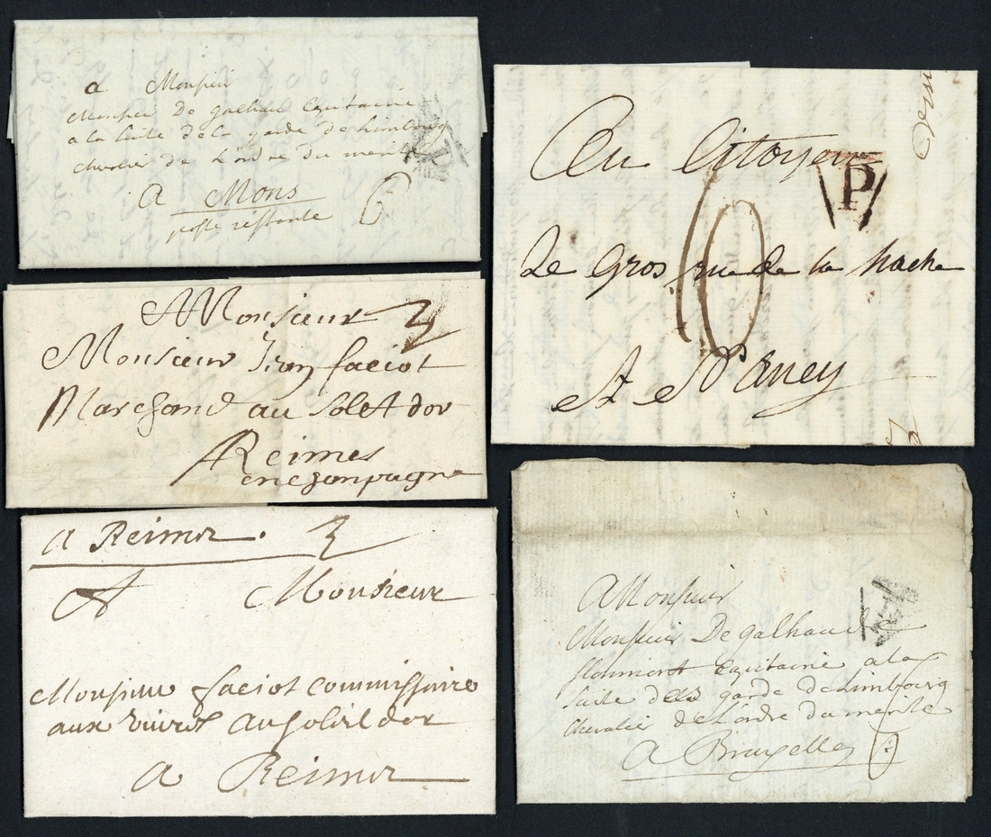 1694-1780 selection of fourteen entire letters, mostly without postal markings, including 1774 with "paroo", 1779, 1780 and 1798 (7 anne) two entires with "p" in triangle, etc., good to fine