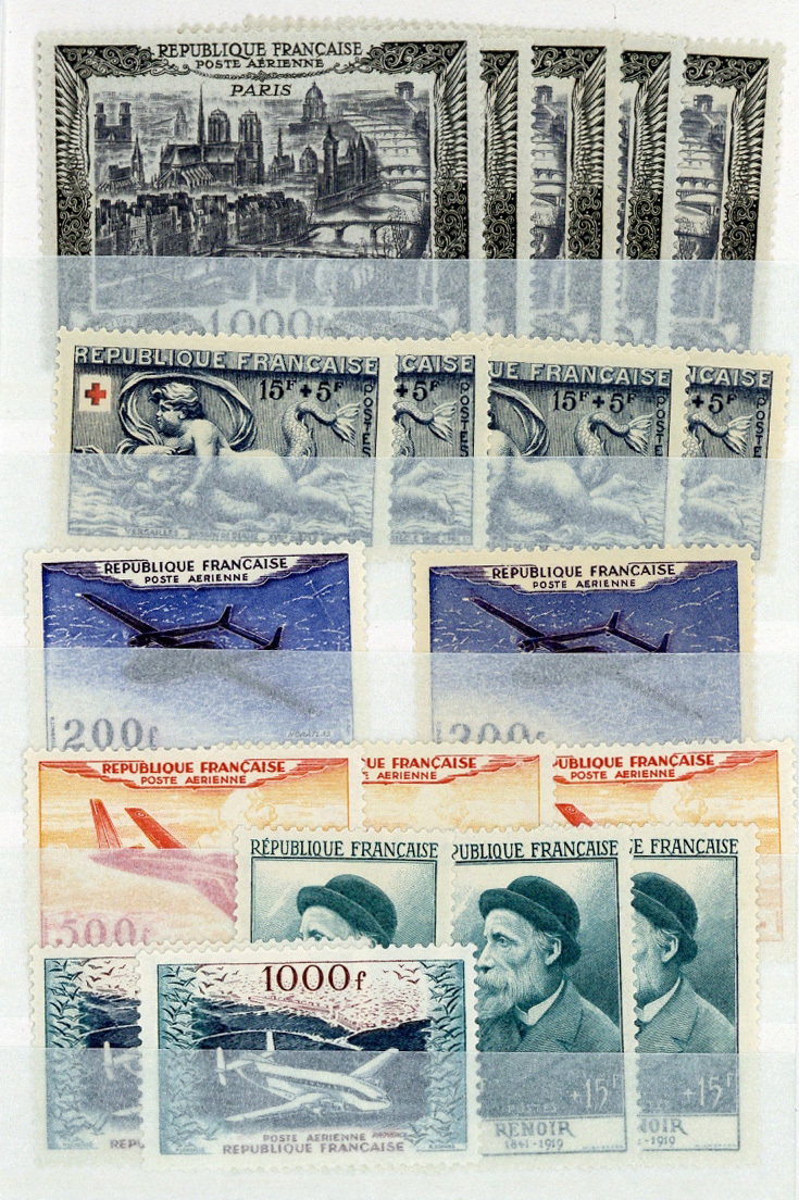 1900-70, a predominately mint, some unmounted, selection housed in two stockbooks and an envelope including 1922 War Orphans' Fund +1f.+5f.+5f. (2), 1926 War Orphans' Fund 5f.+1f. (2), 1929-33 10f., 1936 South America Flight 10f. (2), 1949-50 1000f. (5), 1949 CITEX 100f. (7), 1954 Air 500f. (3), 1000f. (2), 1957-59 1000f. (2).; the balance of miscellaneous world with miniature sheets. (hundreds)