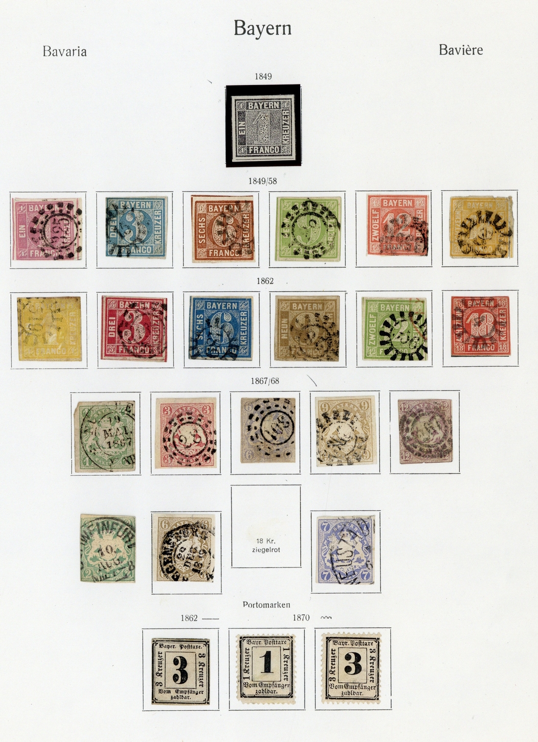 1850-1920 mint and used collection (240) on pages, including 1849 1k. black unused (signed Bühler), 1867-69 9k., 1870-73 wmk. 17mm. 18k., wmk. 14mm. 12k.,1875 18k., a good range of the later issues with 1911-12 Luitpold to 20m., 1919-20 Free Stare overprints on Bavaria perf. to 20m. used, etc., mixed condition