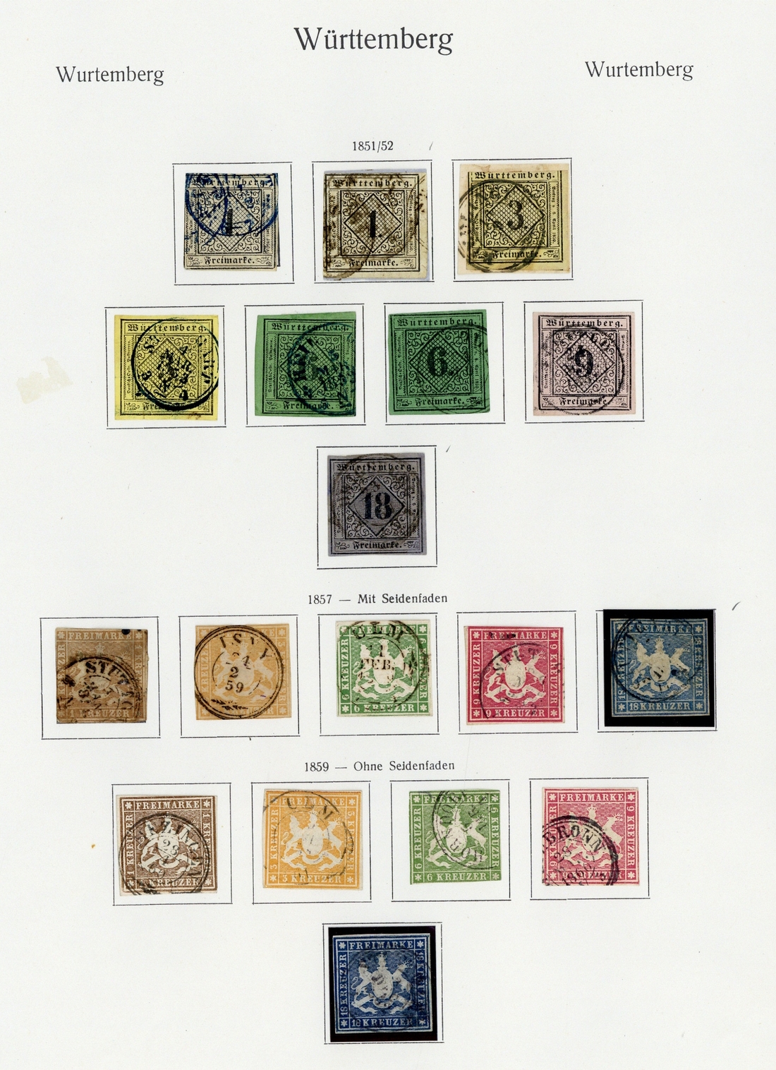 1851-1923 collection (196) on pages, including 1851-52 1k. on piece, 18k., 1857 18k., 1859-62 thick paper, perf. 13½ 6k., 9k., thin paper, perf. 13½ 1k. (2), 6k., 9k., 18k., perf. 10 1k., 9k., 1863-64 9k., 18k., 1865-68 rouletted 7k., 18k., 1875-79 2m. orange-yellow, 2m. vermilion on orange, later issues, etc., predominantly used, mixed condition
