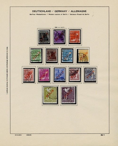 1948-90, used collection housed in a printed Schaubek album comprising complete basic issues except 1948 overprints in black 3Dm., 5Dm. and 1949 Berlin Relief Fund miniature sheet. Generally good to fine. (hundreds)