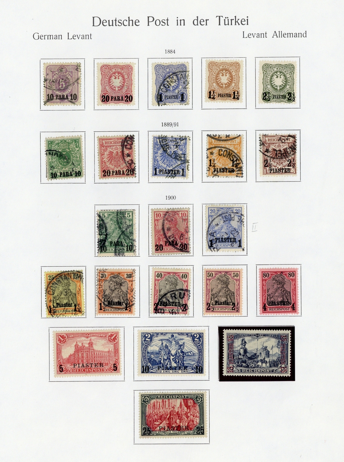 1884-1912 mint and used collection (45) on pages, including 1900 25pi. on 5m. handpainted borders, 1905-12 25pi. on 5m., etc., chiefly good to fine