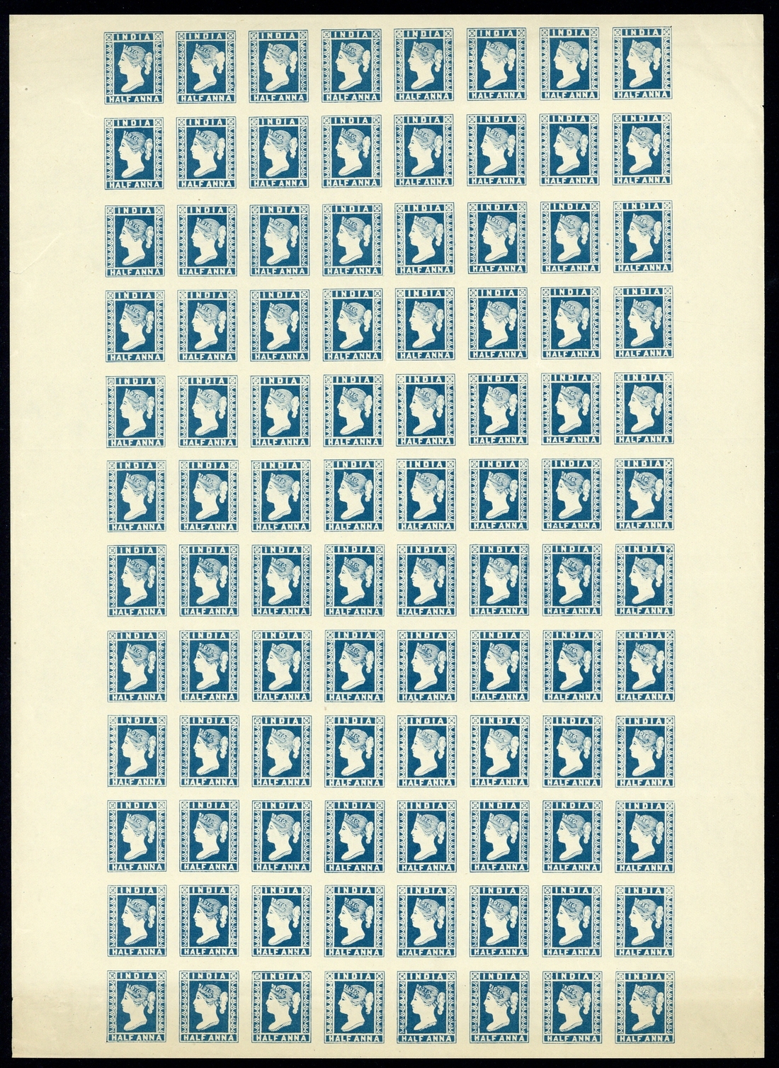 1894 ½a. essay with crosses in upper corners, complete sheet of ninety-six in blue with each stamp having single letter of "specimen" on reverse; fineR