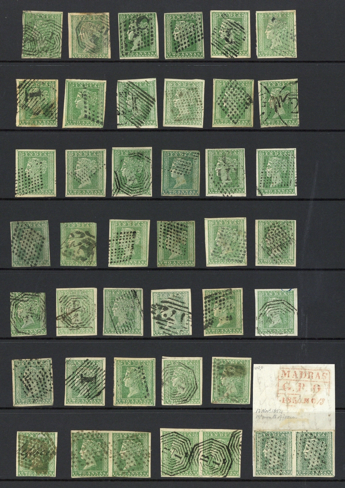 2a. selection (42) with three horizontal pairs (one on piece), shades; generally good to fine