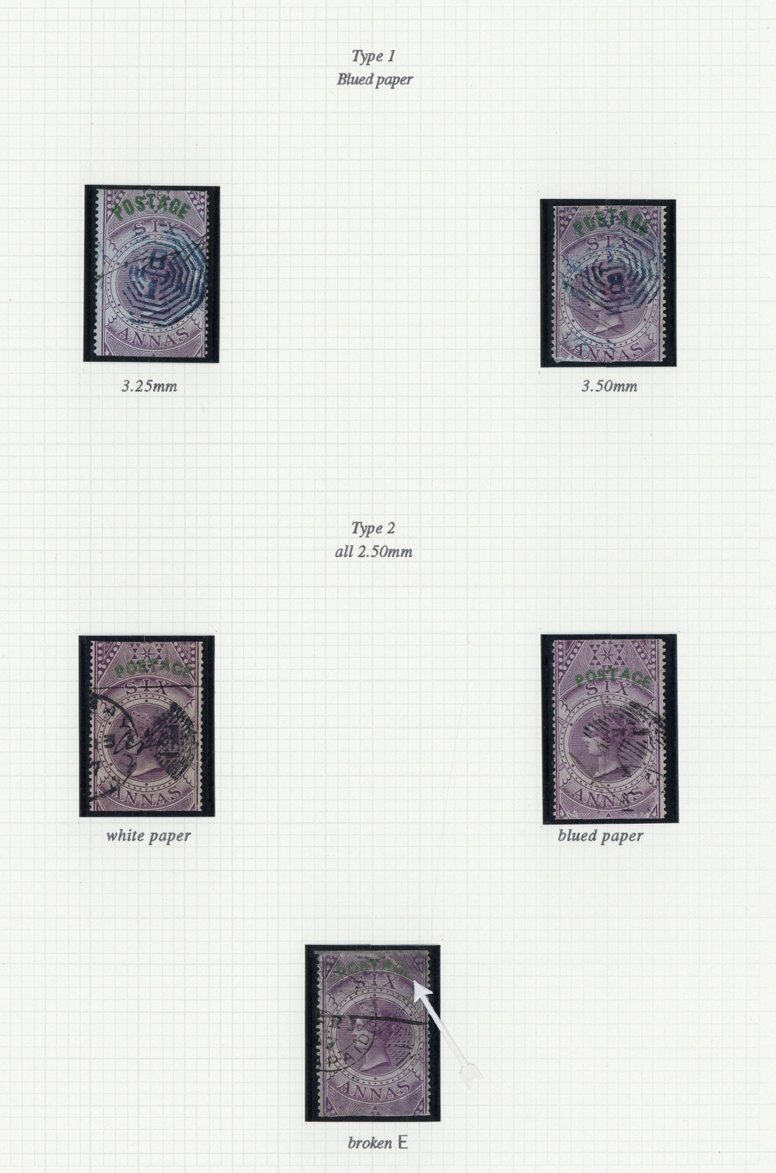 1866 "postage" 6a. purple, tall overprint (3) and short overprint (4, one with broken "E"), variously cancelled, fair to fine; also two forged overprints. S.G. 66, 68, £1,350