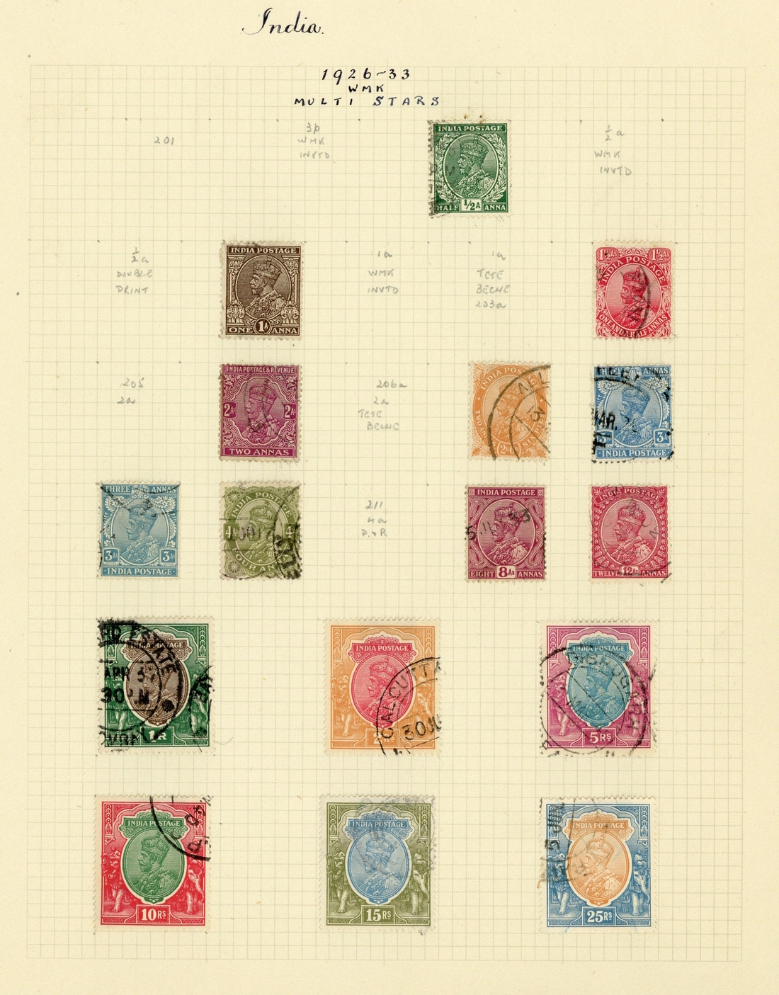 1882-1948 mixed mint and used selection arranged on album leaves including used K.E.VII values to 15r., K.G.V. to 25r with 1929 Air. 8a. reversed serif, 1939-43 values to 15r. mint, 1948 Gandhi in unused pairs; also Service issues and Muscat. Condition mixed. (hundreds)