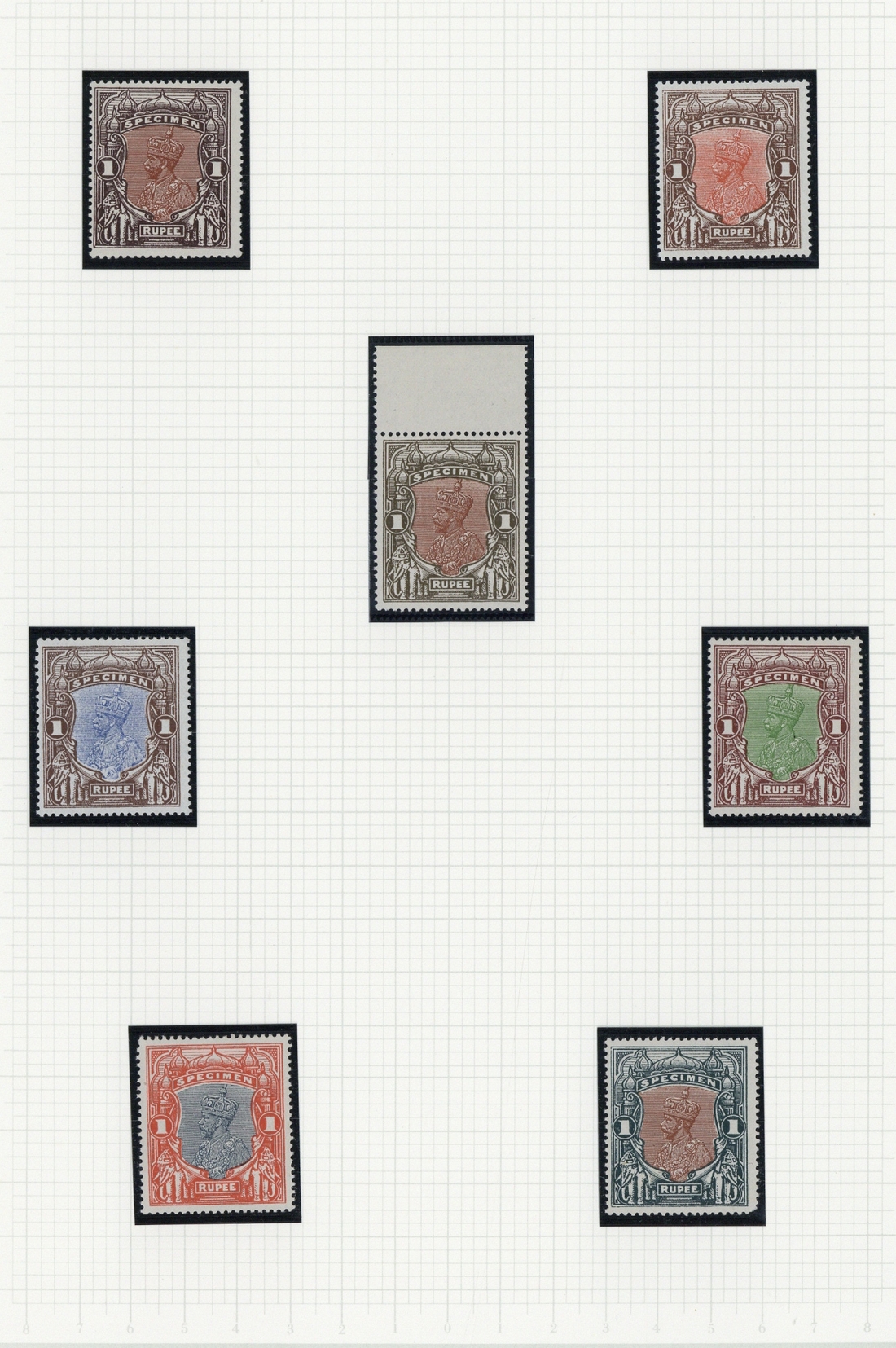 1925 Delhi essays, comprising 2a. (27 with perf. 11 pair, various perf. 14 pairs and perf. 14 marginal block of four on watermarked paper) and 1r. (10, three with minor retouches) in a variety of colours; generally fine