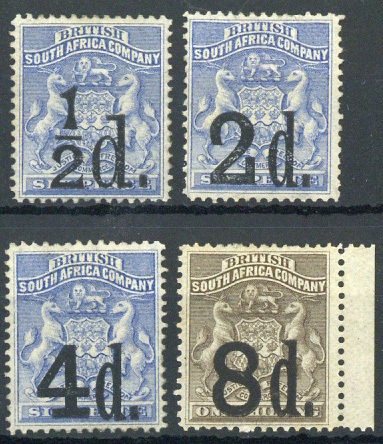 1892 (2 Jan.) Surcharge set of four (8d. on 1/- marginal), fresh unused with part to large part original gum. S.G. 14-17, £650