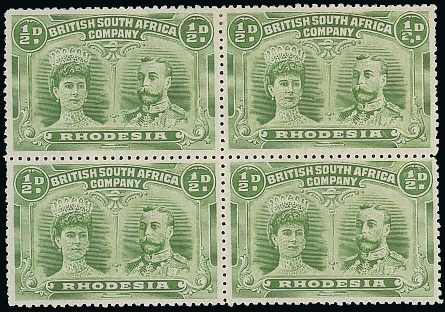 ½d. pale green group (RJL4) block of four, [28-39], [29] "double dot" variety, fresh lightly mounted mint with the lower pair remaining unmounted; [38] with a few shortish perfs. at left, otherwise fine. Photo