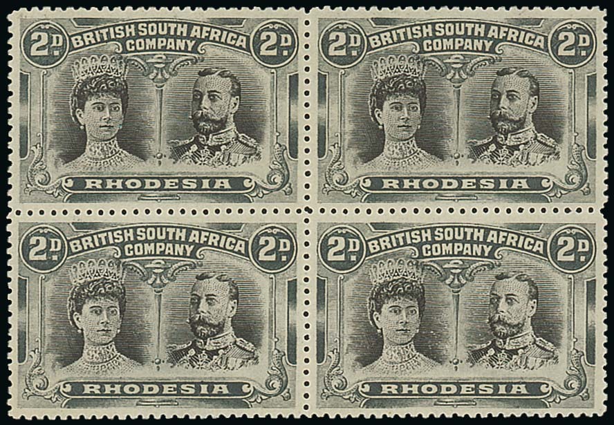 2d. black and slate block of four, [16-22], fresh lightly mounted mint. S.G. 129. Photo