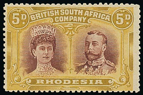5d. error, purple-brown and ochre, lightly mounted mint; small gum bend, otherwise sound. S.G. 141ab, £650. Photo