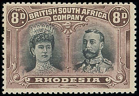 8d. black and purple, [14] Queen's dark ear, large part original gum; despite a pulled perf. at left a presentable example of this very rare printing. S.G. 146, £6,500. Photo