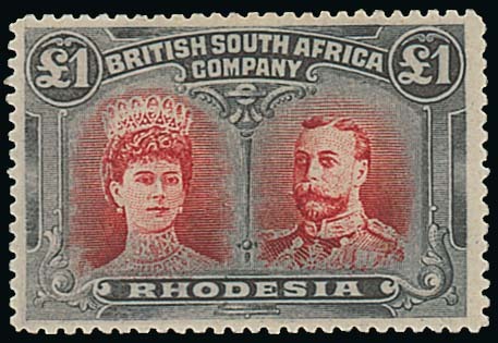 £1 carmine-red and bluish black, fresh mint; two inclusions at left and on King's left shoulder; fine appearance. R.P.S. Certificate (2005). S.G. 165, £1,700. Photo
