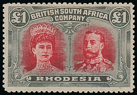 £1 rose-scarlet and bluish black, mint with slightly off-white gum, well-centred and attractive rich colours. R.P.S. Certificate (2005). S.G. 166, £1,600. Photo