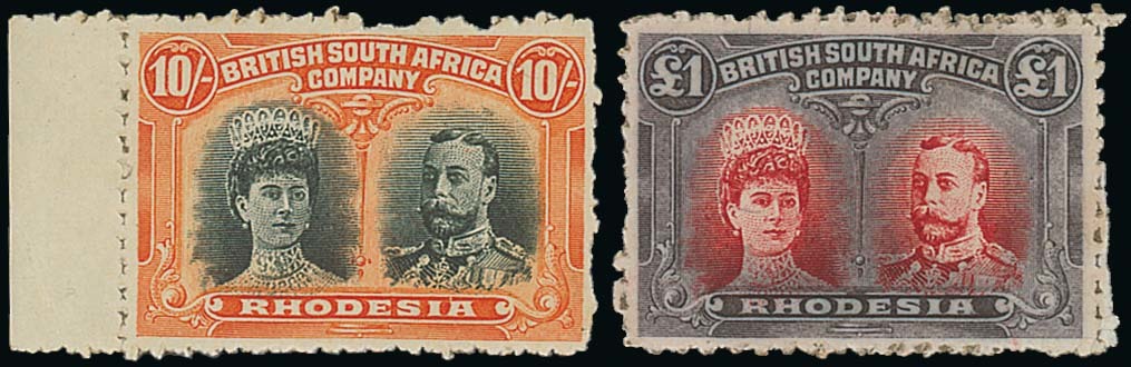 2½d., 3d., 3/-, 5/-, 10/- and £1 with three marginal; fine. Photo for 10/- and £1