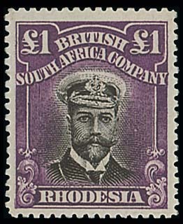 £1 black and purple, part original gum, fresh and fine. B.P.A. Certificate (1995). S.G. 254, £1,800. Photo