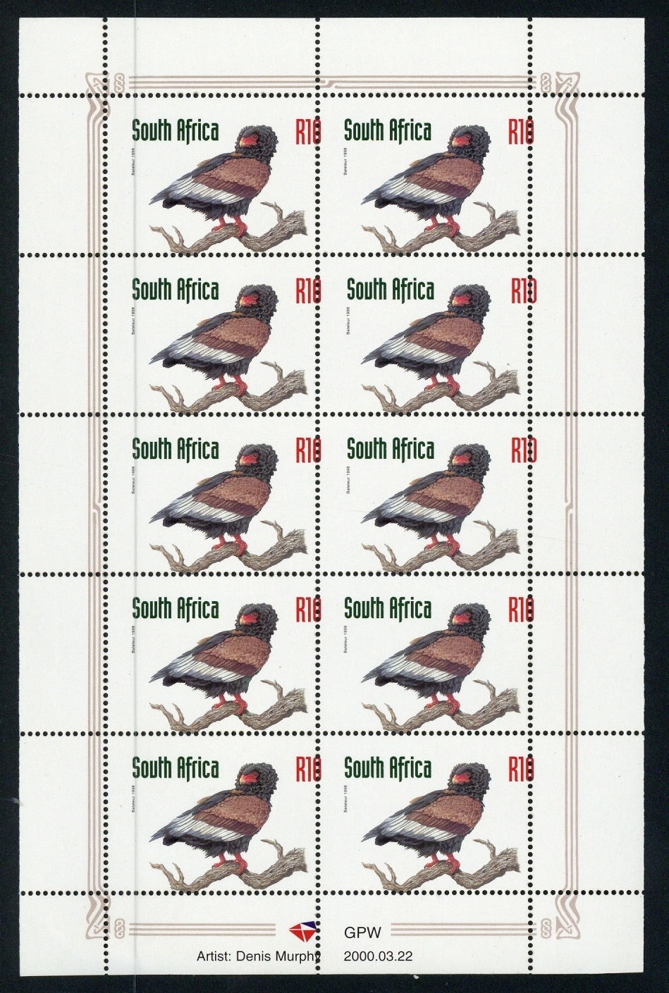 1998 Bird 10r. sheet of ten, variety vertical perforations misplaced 4mm. to left, fine unmounted mint