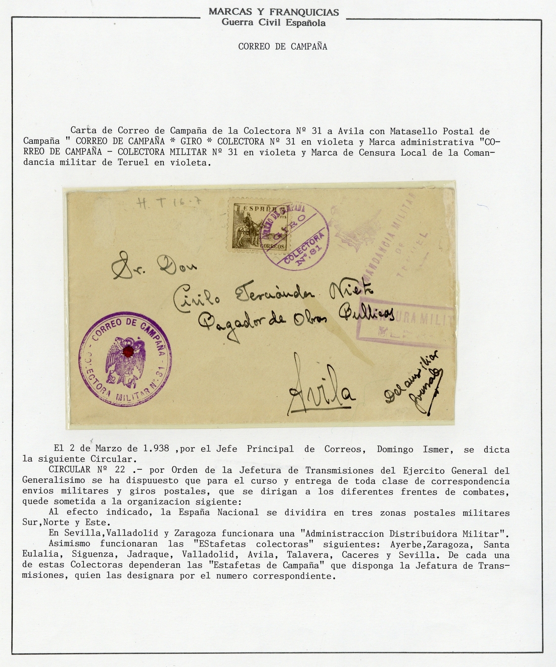 1936-39 Civil War, selection of seventy-five covers and cards, Republican and Nationalist issues, including censored, registered, air mail, charity labels, etc., a few philatelic frankings but chiefly commercial, mostly good to fine
