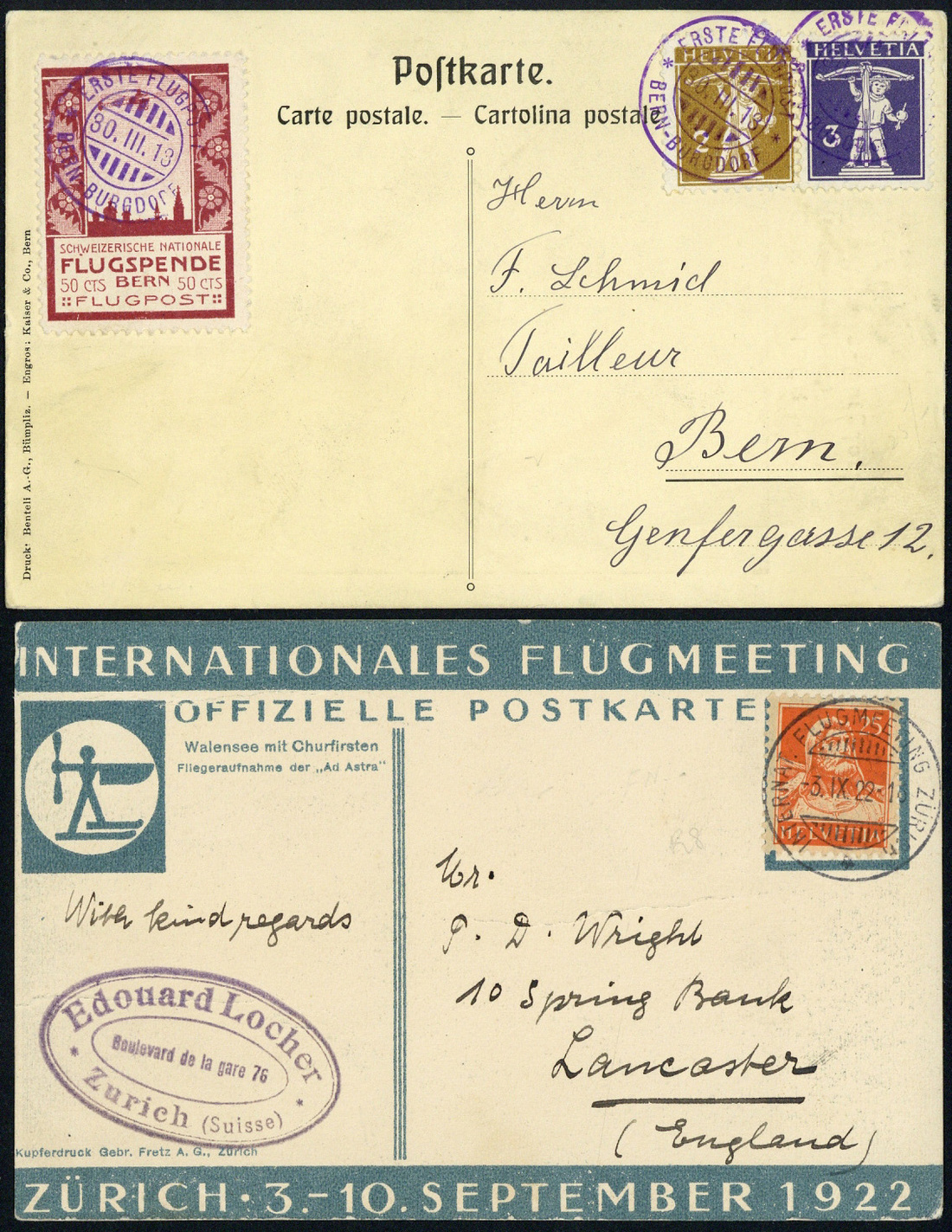 1913-42 selection of covers and cards (67), including 1913 Semi-Official Air Mails 50c. Bale used on 9 March special card to Liestal, 50c. Bern used on 30 March special card (Oskar Bider) to Bern, later with first flights, 1926 Africa cover, Zeppelin flights (3), Gliders, etc.; fine