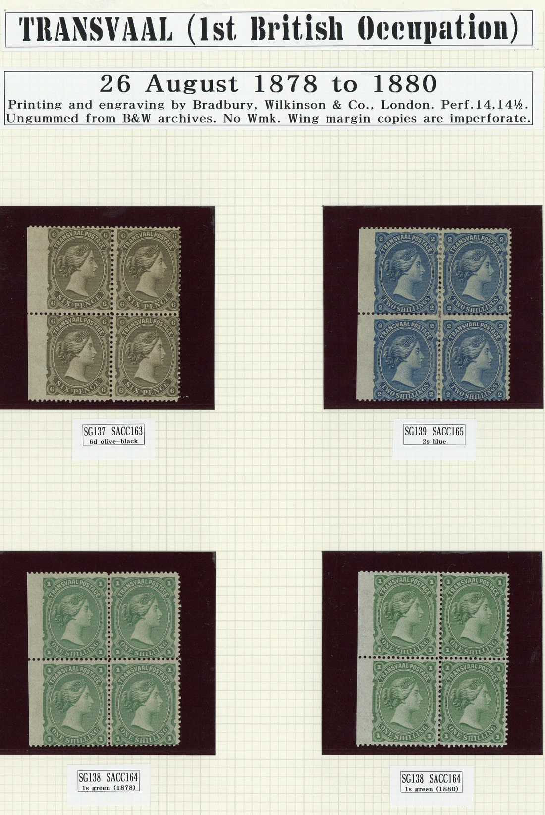 1878-80 ½d. to 2/- set of seven with additional 1/- shade, all in wing-margin blocks of four, fresh without gum. A fine and most attractive group of matching blocks ex the Bradbury, Wilkinson archive sheets. S.G. 133-139, £2,920
