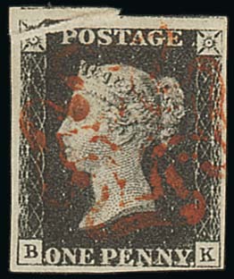 BK close to very large margins all round and showing a portion of the adjoining stamp at top and additionally showing a pre-printing paper crease (pli accordion) at upper left, red Maltese Cross cancellation; fine. A very rare and most unusual variety. R.P.S. Certificate (1963). Photo