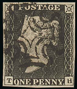 TH greyish-black shade, close to large margins all round, crisp and upright black Maltese Cross cancellation; fine and attractive. Photo