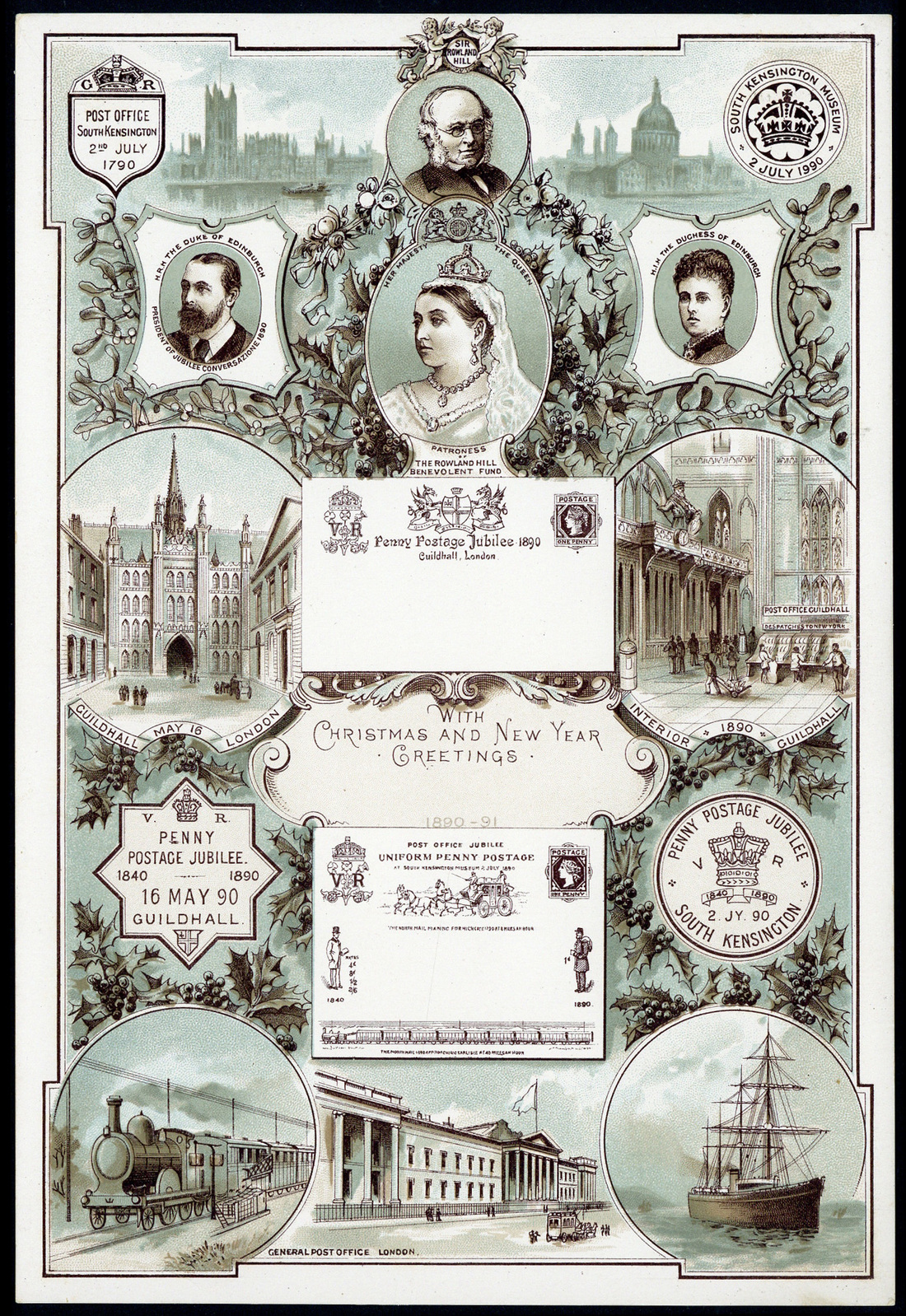 1890 Jubilee Christmas card, issued by the Post office to raise money for the Rowland Hill benevolent fund. Printed by De La Rue; fine unused