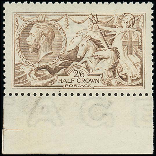 2/6d. Grey-brown (worn plate) with margin at foot, fresh and fine unmounted mint. Also, 1918-19 Bradbury, Wilkinson 2/6d. reddish-brown, fine mint. Specialised N64 (3), S.G. 415, £810. Photo