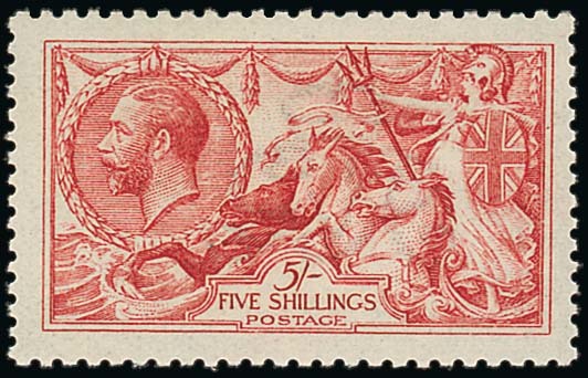 5/- pale carmine, fresh and fine mint. S.G. 410, £600. Photo
