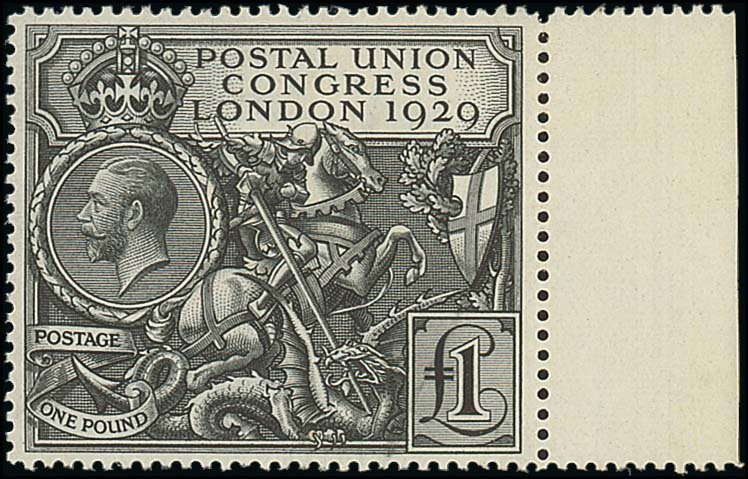 £1 black with margin at right, large part original gum, fresh and fine. Also 1924-25 Exhibition 1d. (2) and 1½d. (2) and 1929 P.U.C. ½d. (2) to 2½d. S.G. 430-438, £750+. Photo