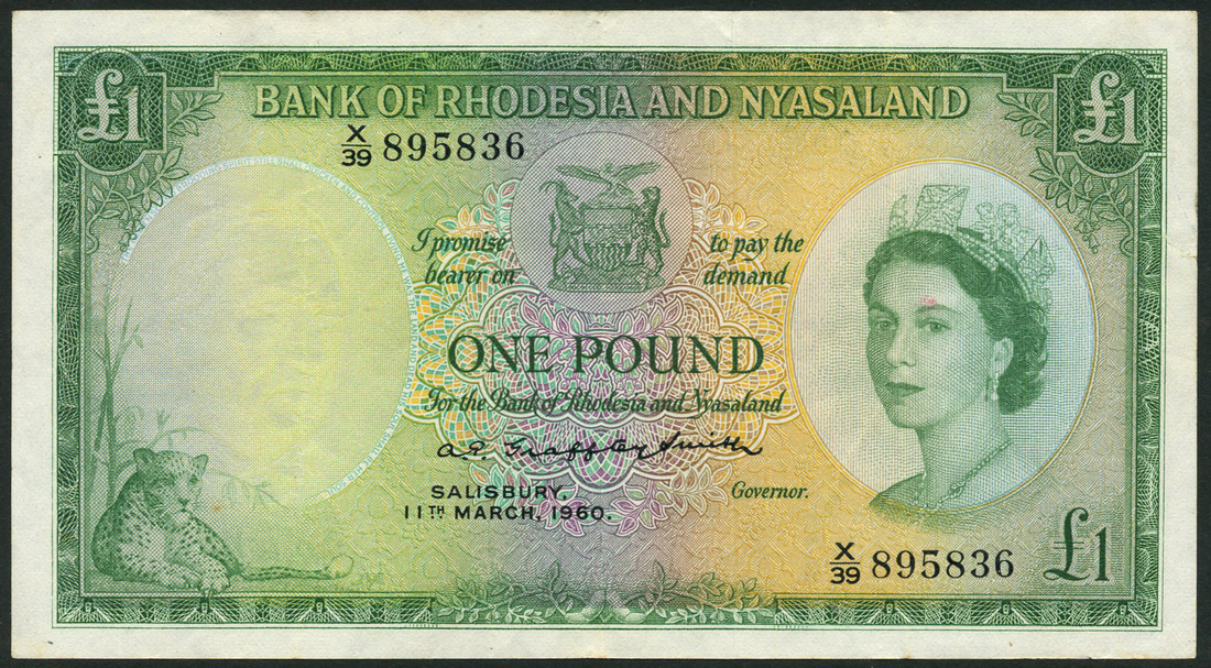 Bank of Rhodesia and Nyasaland, a good sized group of 10/- (18), and £1 (17), 1956-1961, red-brown and green respectively, Elizabeth II at right, arms at top centre, also Reserve Bank of Rhodesia, £1, 1964, red, and $2 (2) 1979, one with prefix X/1, both red, arms at right