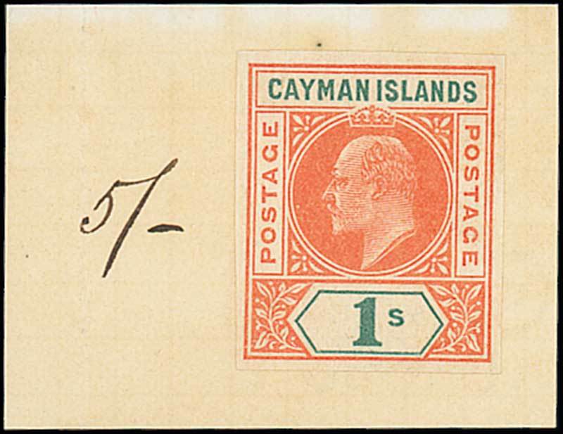 5/- in salmon and green, the issued colours, affixed to piece with manuscript "5/-" alongside, the issued colours; fine. Photo