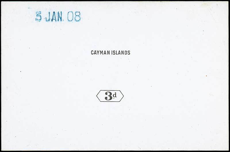 3d. country name and value tablet, in black on glazed card (92x60mm.) dated "3 jan. 08". Photo