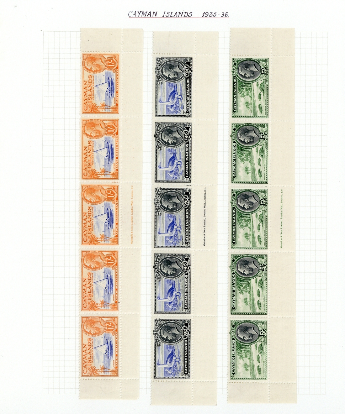 ¼d. to 5/- in horizontal strips of five or six (1½d.), all but the 6d. from the top or bottom of the sheet with 1d. to 2½d. and 1/- to 5/- showing imprint, fine mint with most of the stamps remaining unmounted. An impressive group