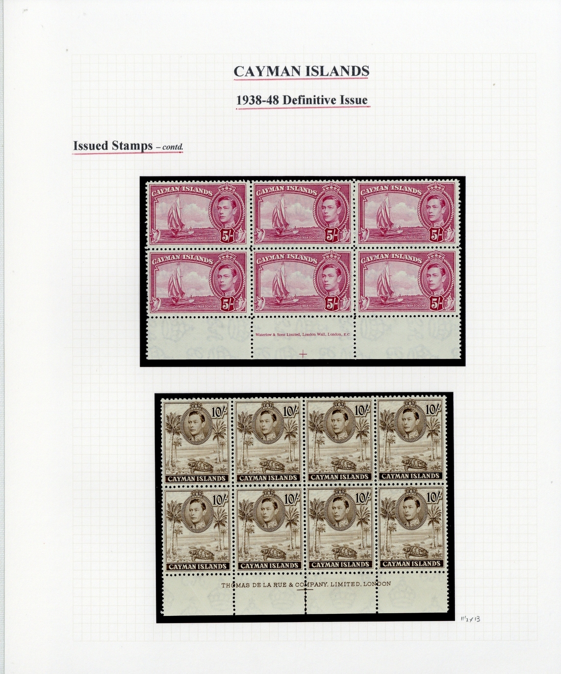 1937 Coronation set in corner blocks of four, 1938 set of twelve in imprint blocks of four (2½d. and 3d.), six (¼d., 1d., 1½d., 2/- and 5/-) or eight (½d., 2d., 6d., 1/- and 10/-, the 6d. with part only), 1946 Victory pair in corner plate blocks of four, 1947 2½d. and 3d. in imprint blocks of four, 1948 Wedding pair in plate or imprint blocks of four and 1949 UPU set in imprint/plate blocks of four, fine mint. A scarce group